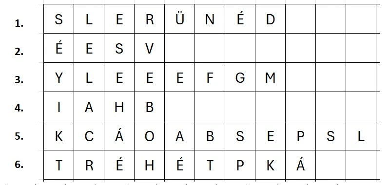 Nézd meg az ábrát! Vízszintesen 6 szó betűi keveredtek össze. Olyan szavak, amik összefüggésbe hozhatok a szabályainkkal. Ha sikerült megfejtened a szavakat, írd le őket a füzetedbe és alkoss velük mondatokat!