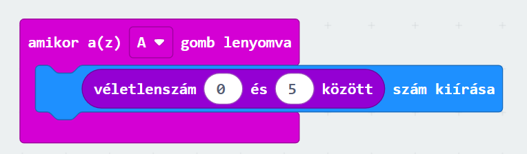 A gomb lenyomására jelenjen meg a kijelzőn egy 0 és 5 közötti szám véletlenszerűen!