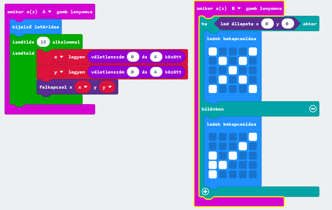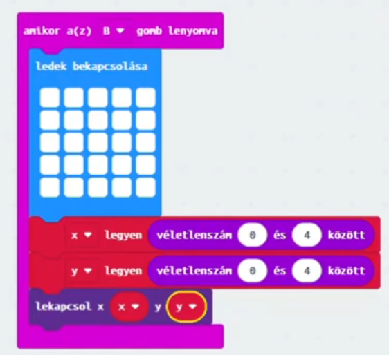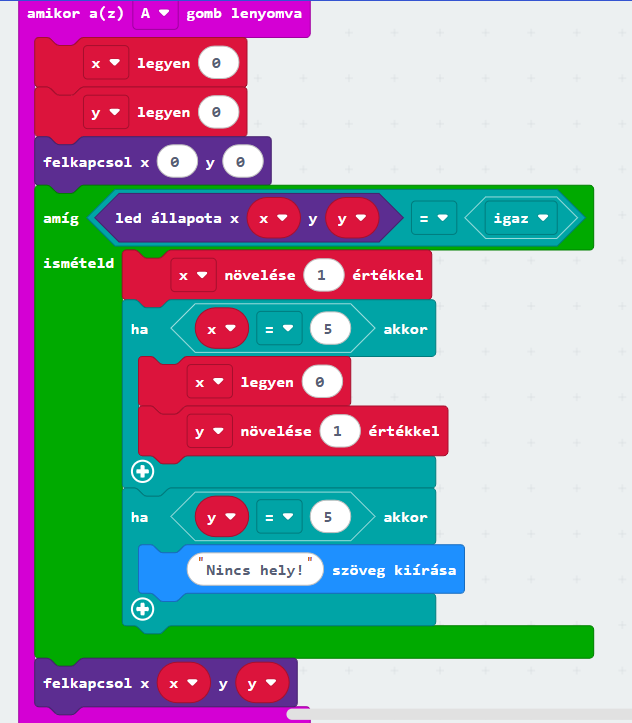 Most ne egyenként kapcsold fel a LED-eket, használd a ledek bekapcsolása blokkot!