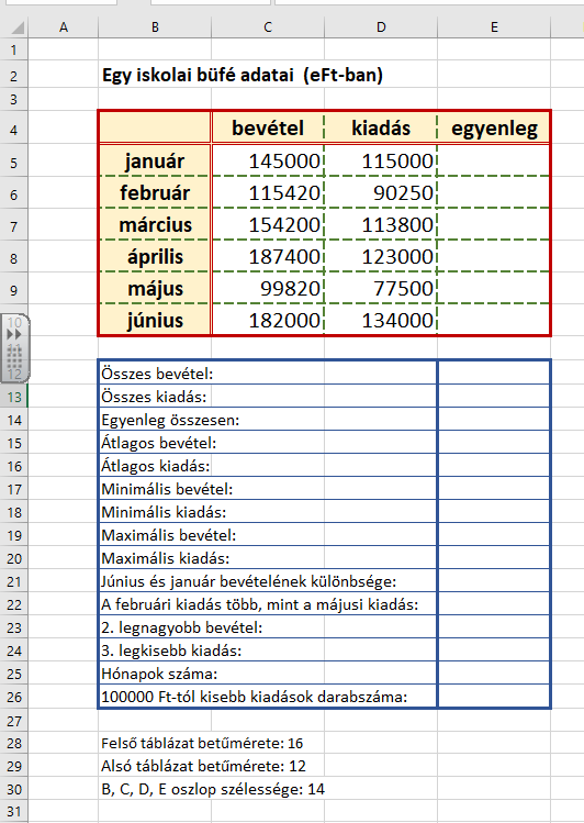 Diagramcím: Egy iskolai büfé adatai.