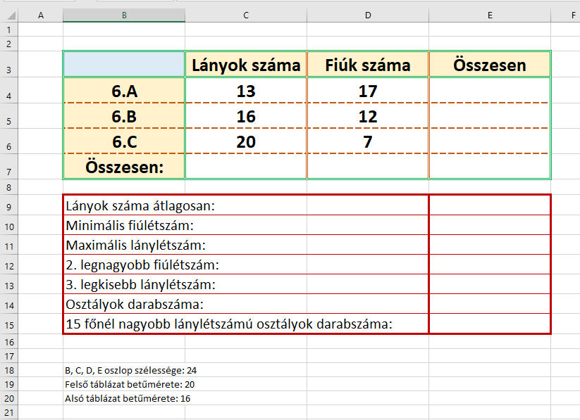 Az osztályok jelzése és a lányok és fiúk létszáma szerepeljen a diagramban.
