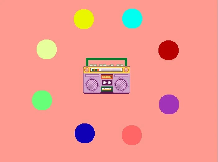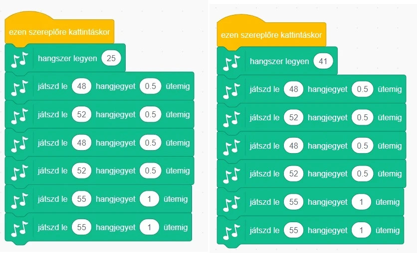A színes körökre ha kattintunk, mindig a boci, boci tarkát játsza le, de különböző hangszereken. ( 8 kör = 8 hangszer) Segítségnek a kódja 2 hangszeren: