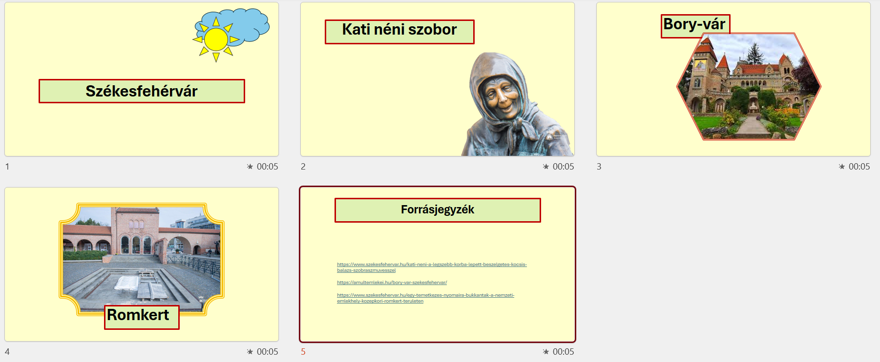 Szövegdobozban helyezd el a Székesfehérvár címet! A szövegdoboz kitöltése halványzöld, a vonal bordó színű, 5 pt szélességű, összetétele: szimpla vonal.