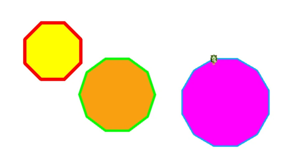 Nyolcszög: 7-es tollvastagság, vörös tollszín, kitöltés citromsárga.