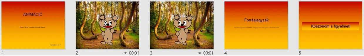 Készíts egy animációt, ahol az erdőben áll egy maci, akinek mozog a szeme, keze, lába.