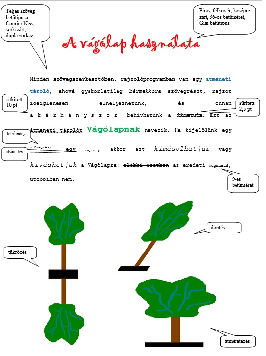 Paintben rajzolj meg egy fát! Másold le háromszor és végezd el rajta a műveleteket, majd egyszerrre kijelölve őket másold át a Wordbe a szöveg alá! Mentsd el a kész dokumentumot!