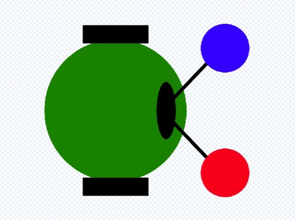 Rajzolj egy robotot, amelynek különböző színű csápjai (pl. kék és piros) vannak a bal és jobb oldalon!