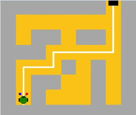 Célunk, hogy a robot a fehér vonalat követve menjen végig a pályán. Amikor beér a fekete téglalaphoz írja ki a program, hogy Célba értél!