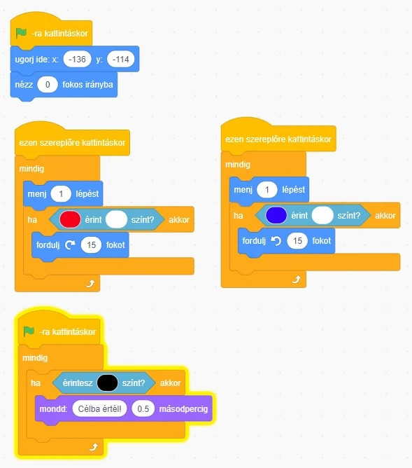 Használd a Scratch színérzékelő blokkját annak eldöntésére, hogy merre kell kanyarodnia a robotnak!